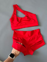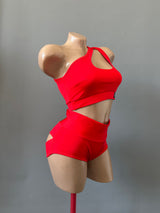 Turn heads with this red pole dance outfit – a matching cut-out top and high-waist shorts set designed for women who love to move with style. Perfect for pole dancing, hot yoga, exotic dance, fitness or festivals, this sexy yet functional activewear set is made from premium Italian supplex: stretchy, breathable and durable. It flatters your body, stays in place during movement, and adds confidence to every performance.